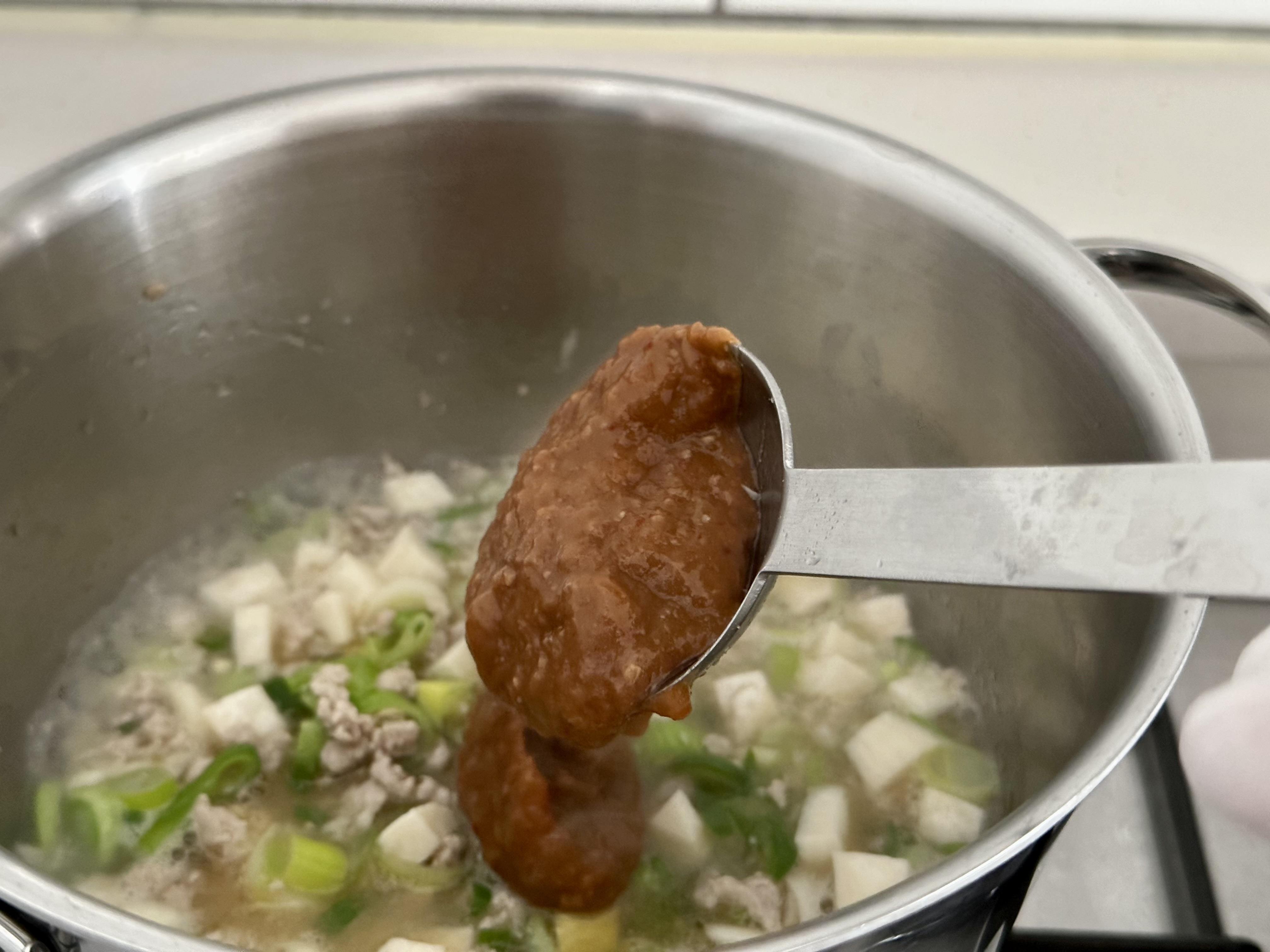 5. 이제 된장을 넣어주세요. 집된장이나 시판된장을 사용하시면 되는데 짤수도 있으니 조금씩 맛을 봐가면서 추가하시면 될 것 같아요. 고추장을 많이들 넣으시던데 저는 텁텁한 맛이 싫어서 고추장은 넣지 않아요.