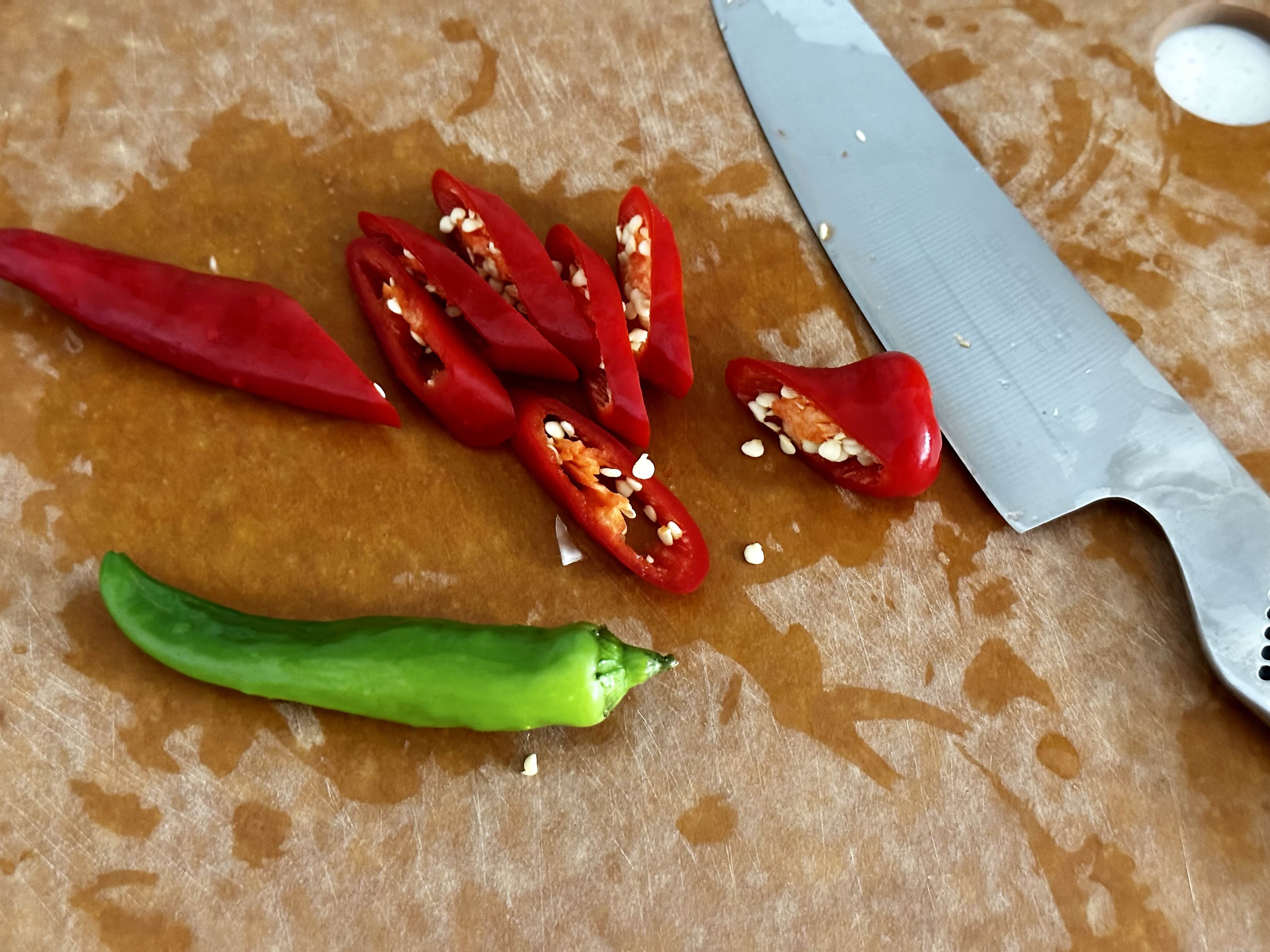 9. 마지막으로 대파와 홍고추, 청양고추를 넣어 주고 한소끔 끓여주시면 완성입니다. 끓이는 중간중간 거품은 제거해 주시면 돼요.