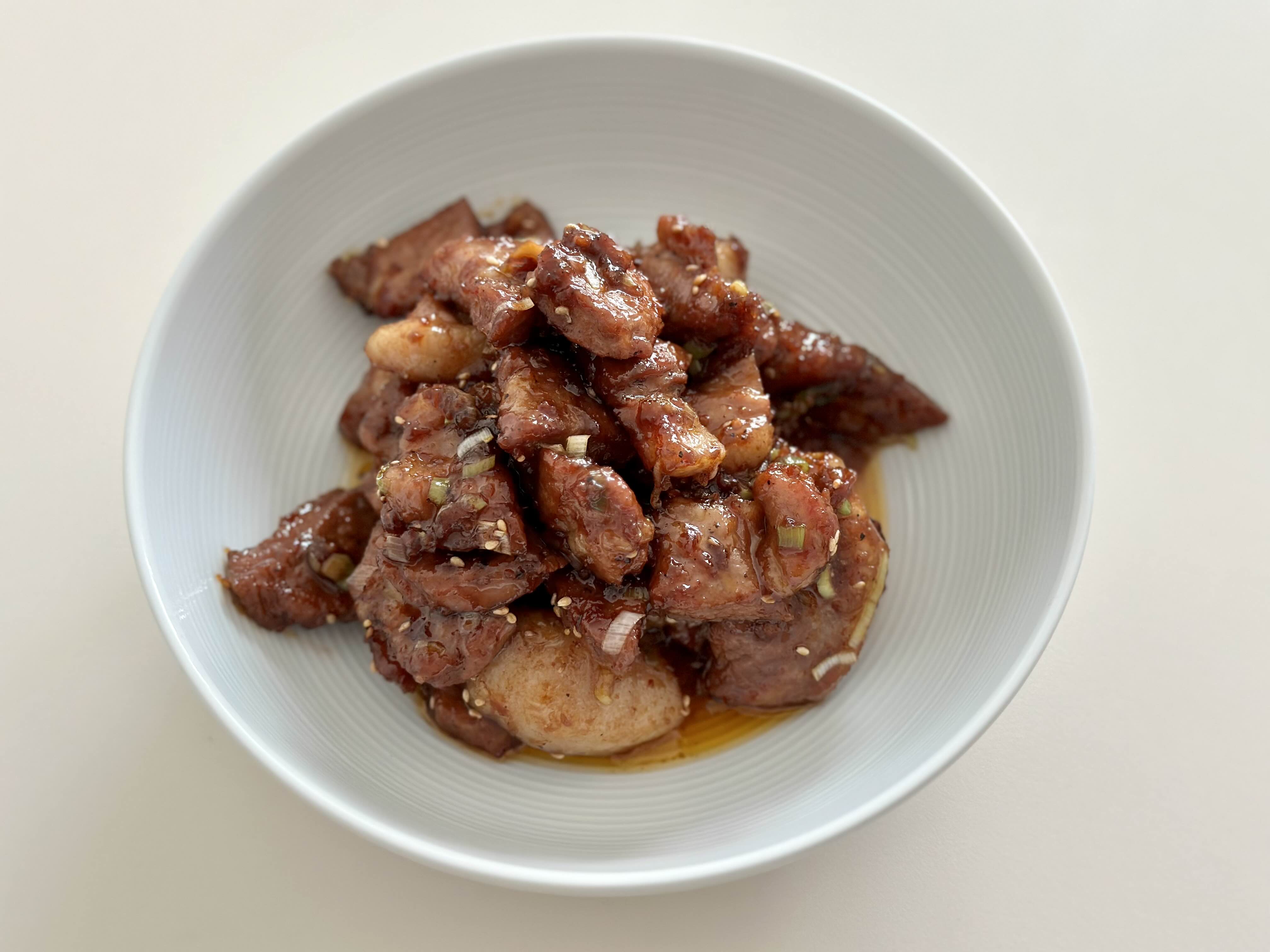 1. 고기를 굽기 전에 먼저 밑간을 해주시면 좋아요. 저는 소금과 후추를 뿌려서 잠시 두었어요. 위에서 썼듯이 청주로 같이 재워둬도 좋아요. 어차피 양념으로 졸이기 때문에 저는 청주는 생략했어요.