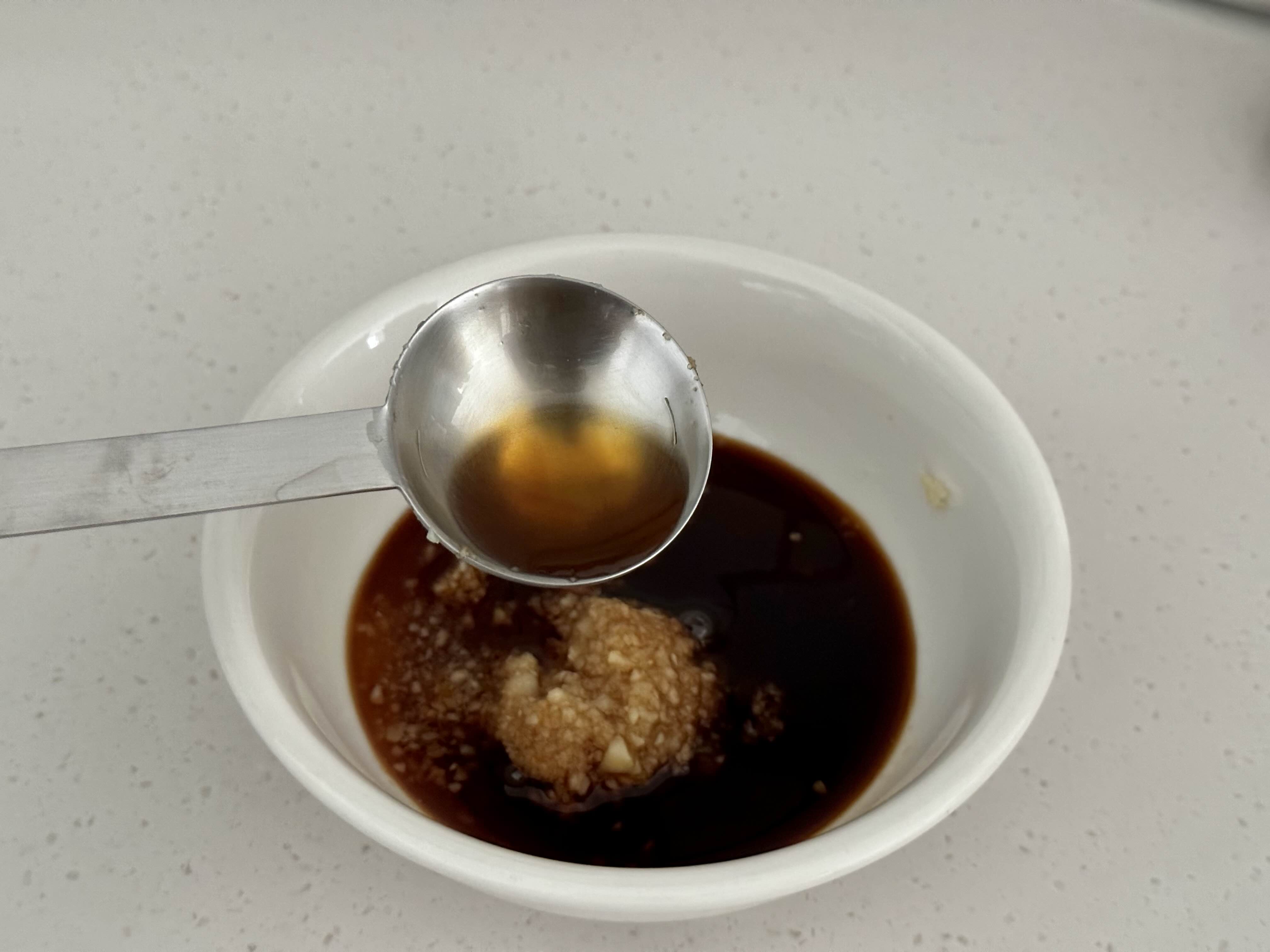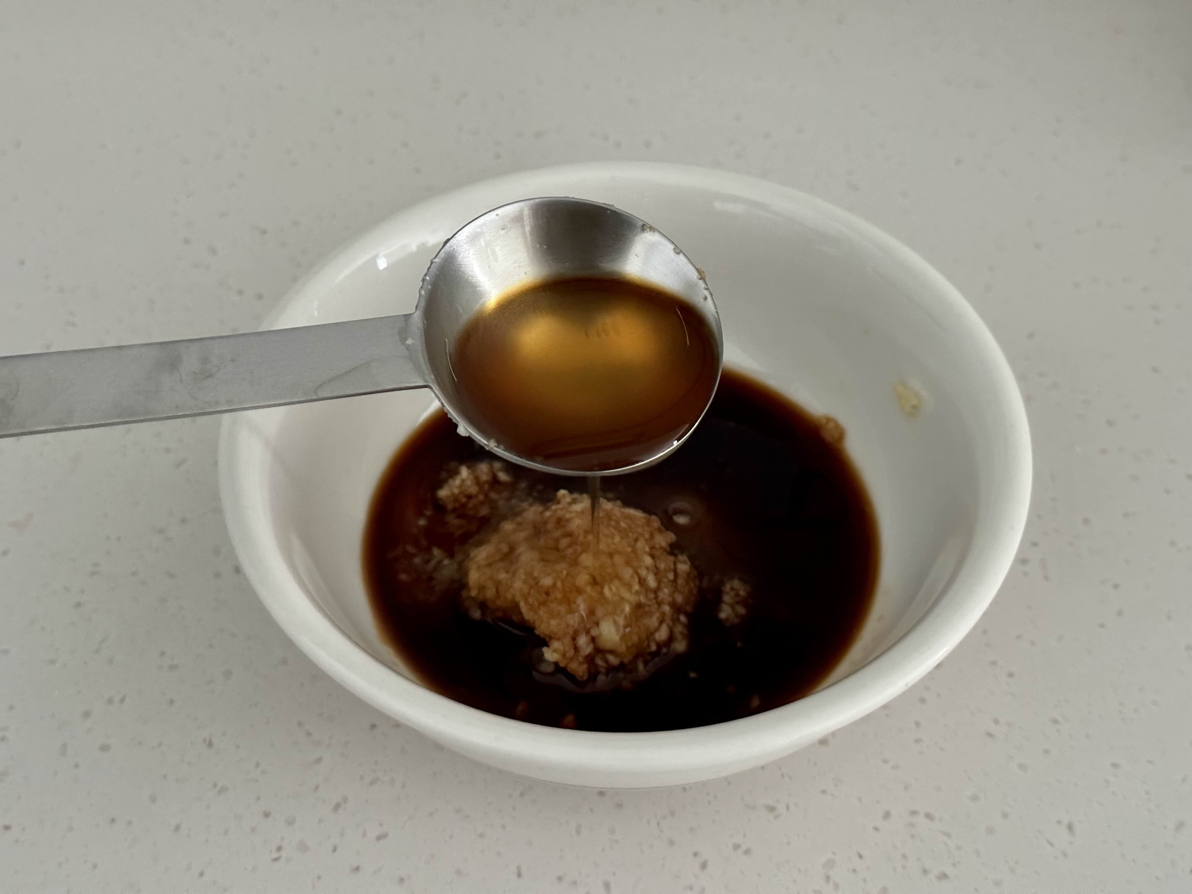 설탕 2T, 고춧가루 1/3T, 간장 3T, 다진 마늘 1T, 매실청 1T, 물엿 1T, 참기름 1/3T, 후추를 잘 섞어 주세요. 고춧가루는 느끼할 수 있어서 넣긴 하는데 색도 나지 않고 표도 나지 않아요. 그 대신 느끼하지 않고 개운해요.
