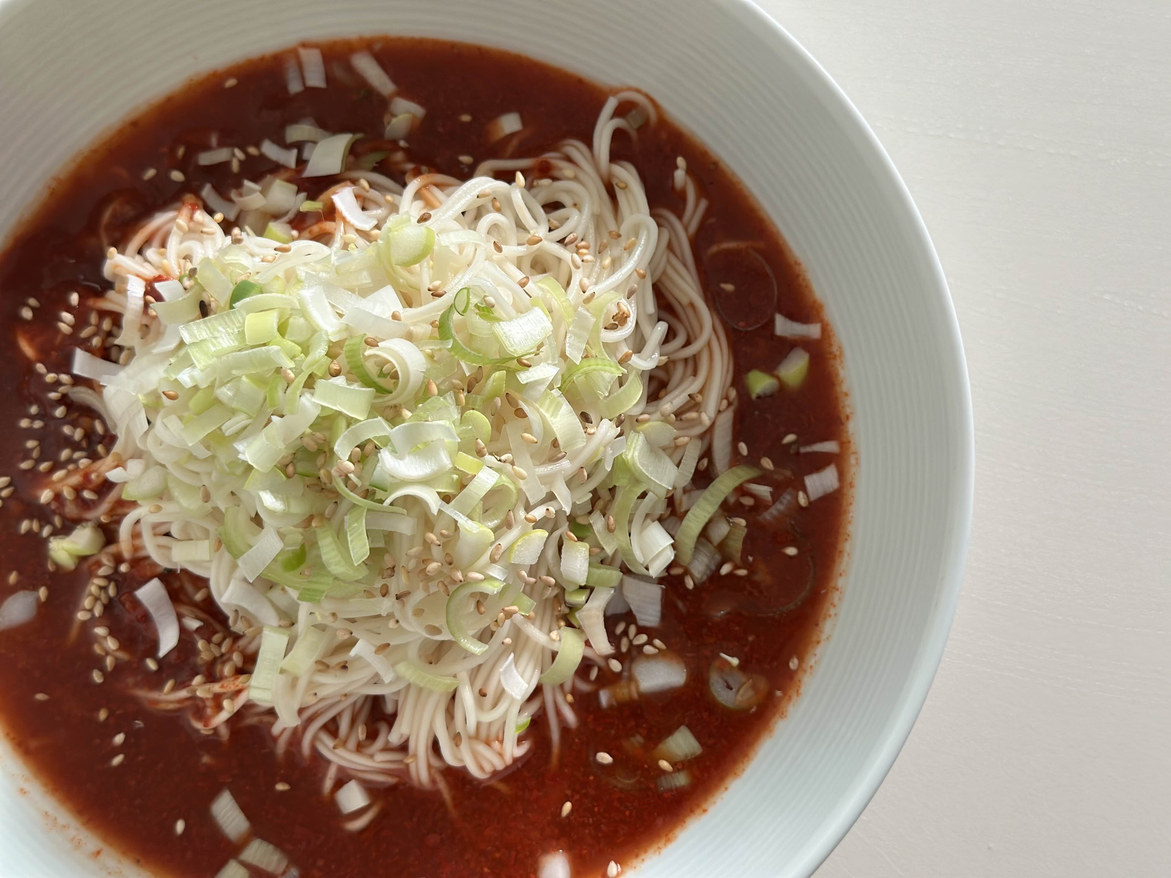 7. 망향국수처럼 상추가 있었으면 좋을 텐데 상추가 없어서 대신 우리 식구들 좋아하는 대파 듬뿍 통깨 듬뿍 얹어서 내어주었어요.