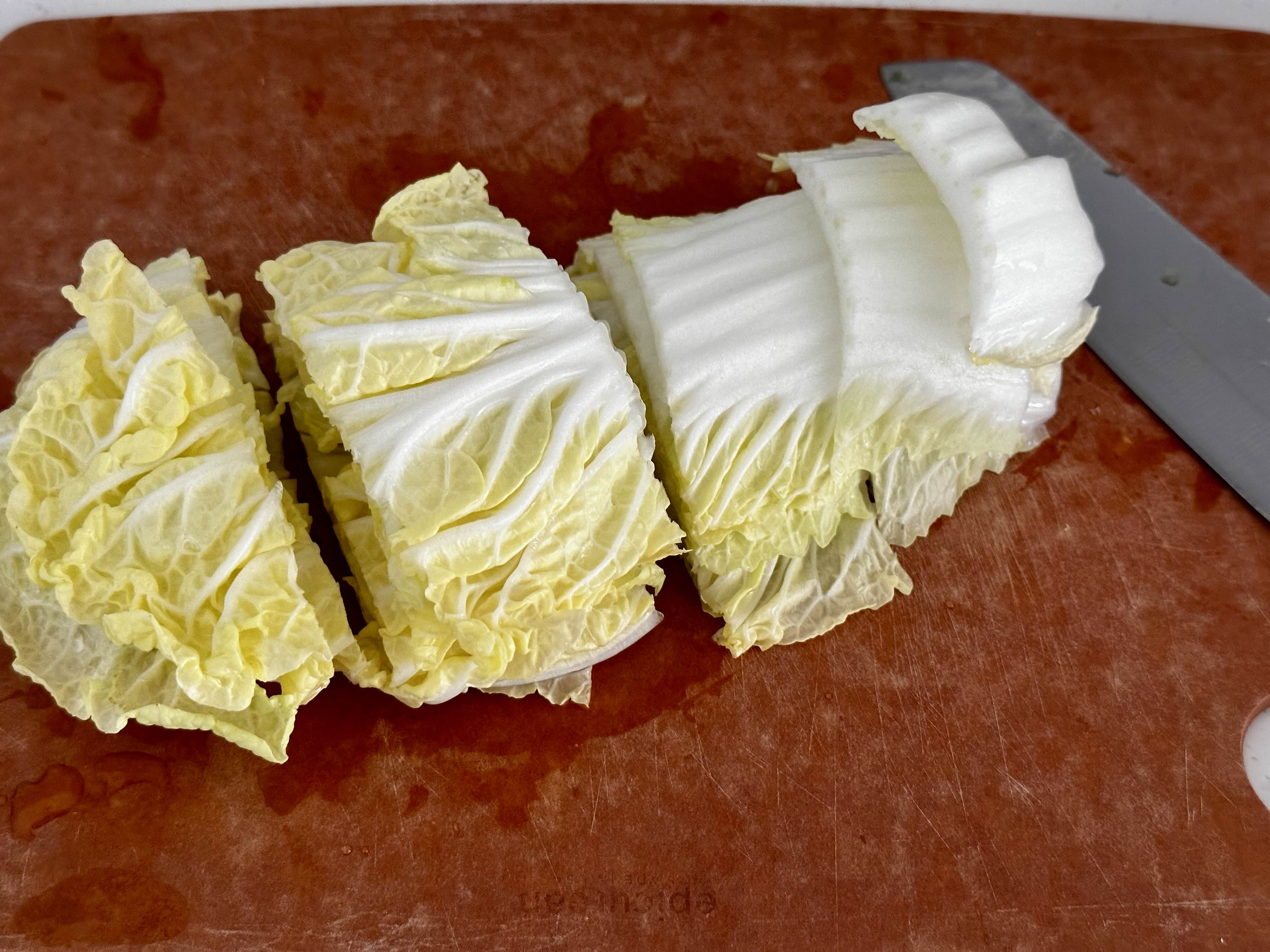 알배추나 얼갈이는 사방 3~4cm로 잘라 주세요.
