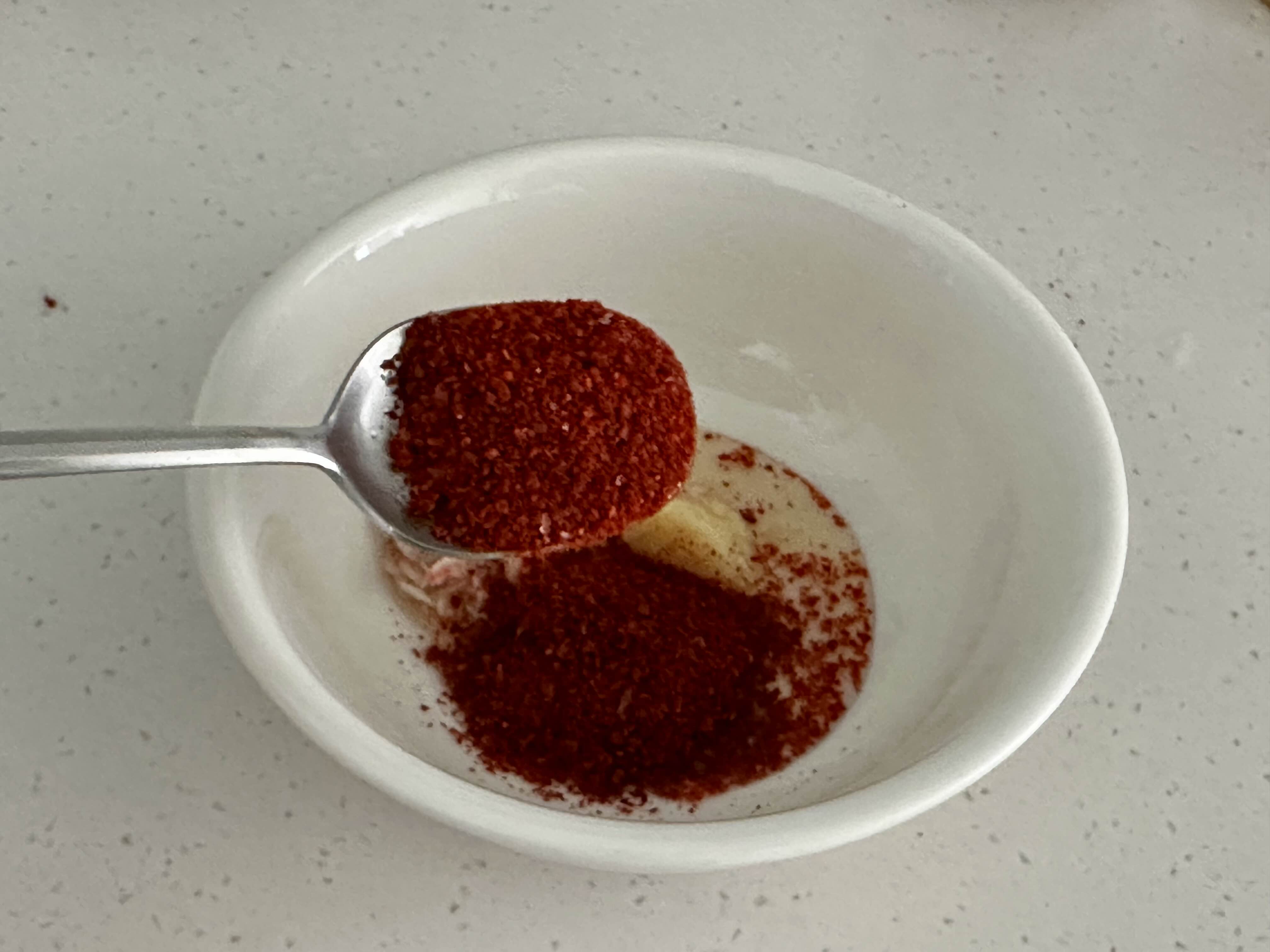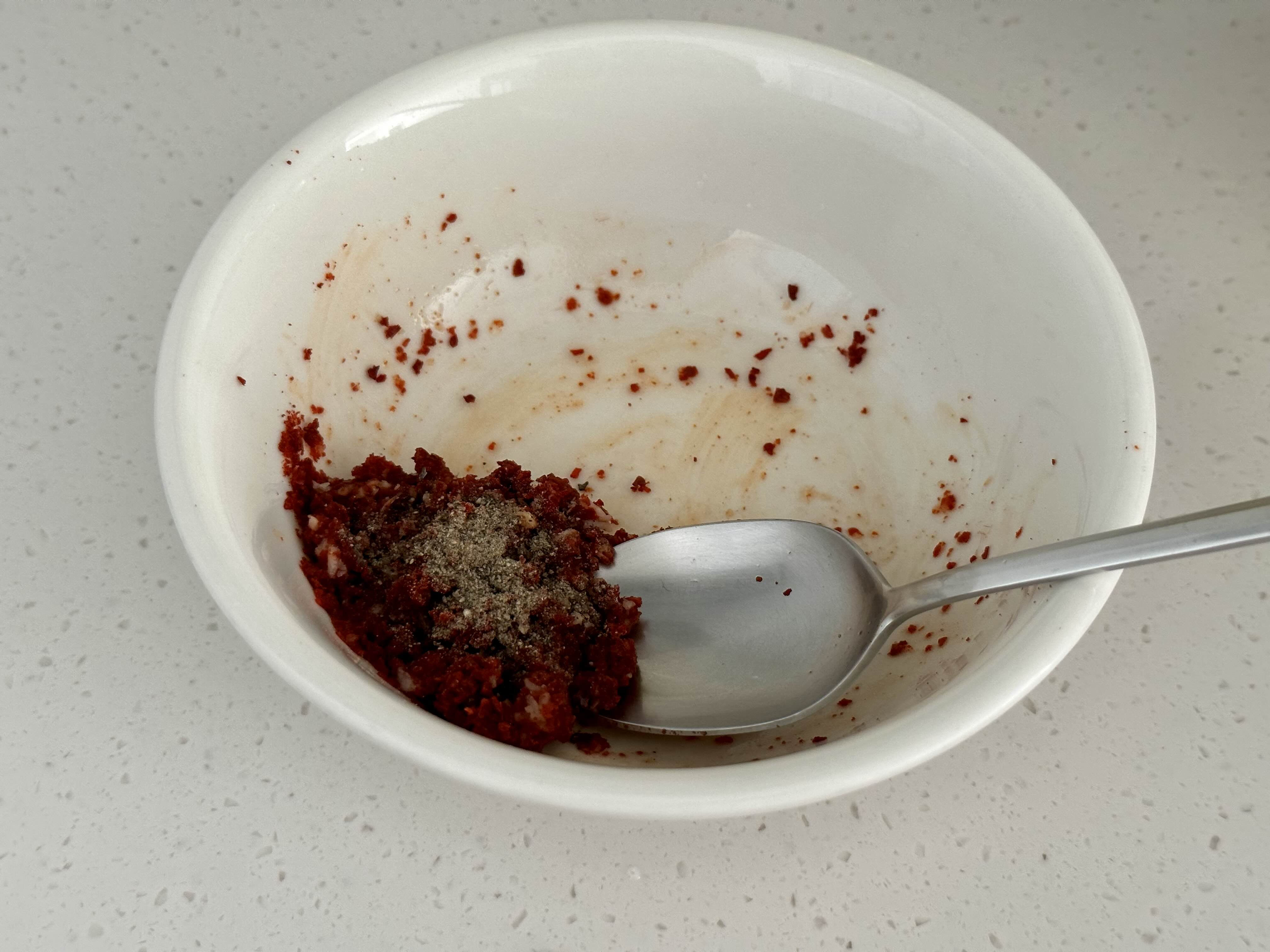 2. 이제 전골에 올릴 양념장을 만들어 주세요. 고춧가루 2큰술, 새우젓 1작은술, 설탕 1작은술, 다진 마늘 1작은술, 다진대파 1큰술, 국간장 1, 소금한꼬집, 후추는 팍팍입니다.