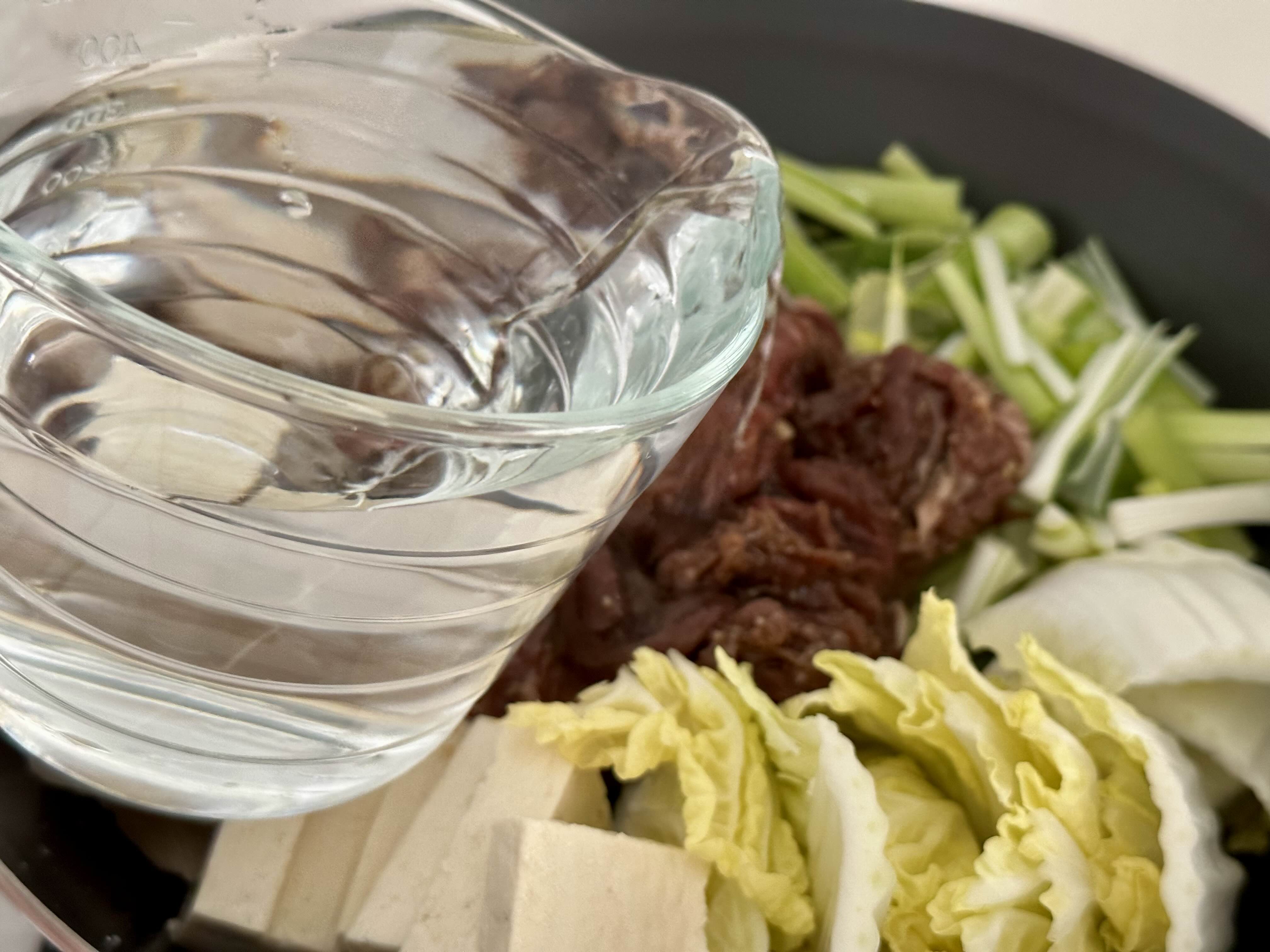 9. 냄비 테두리에 물 1리터를 살살 부어 주세요.